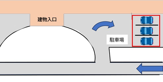 区画に空きがない場合には、停まっている車の前にお停めください。