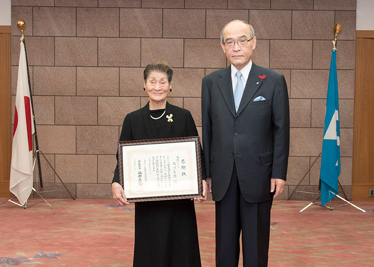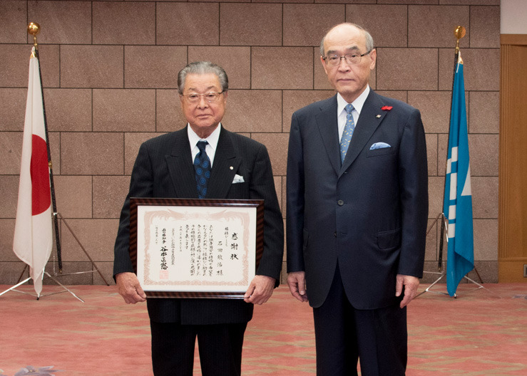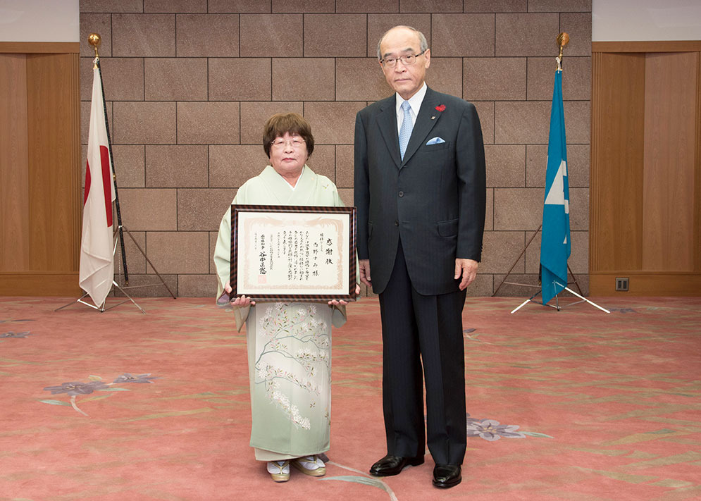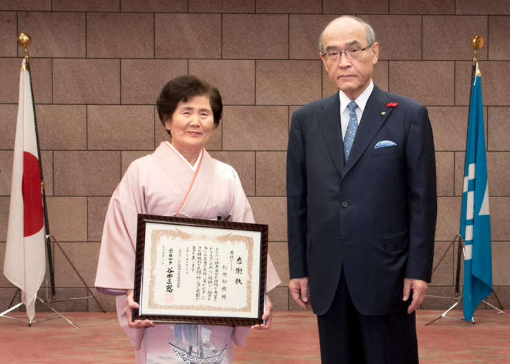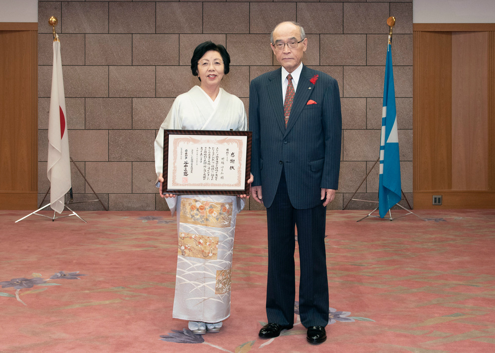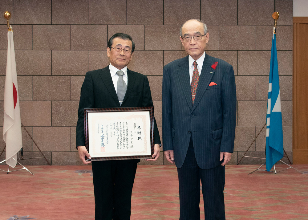 通算10組の成婚をサポートした縁結びistに対し、財団会長(県知事)から感謝状を贈呈しています。