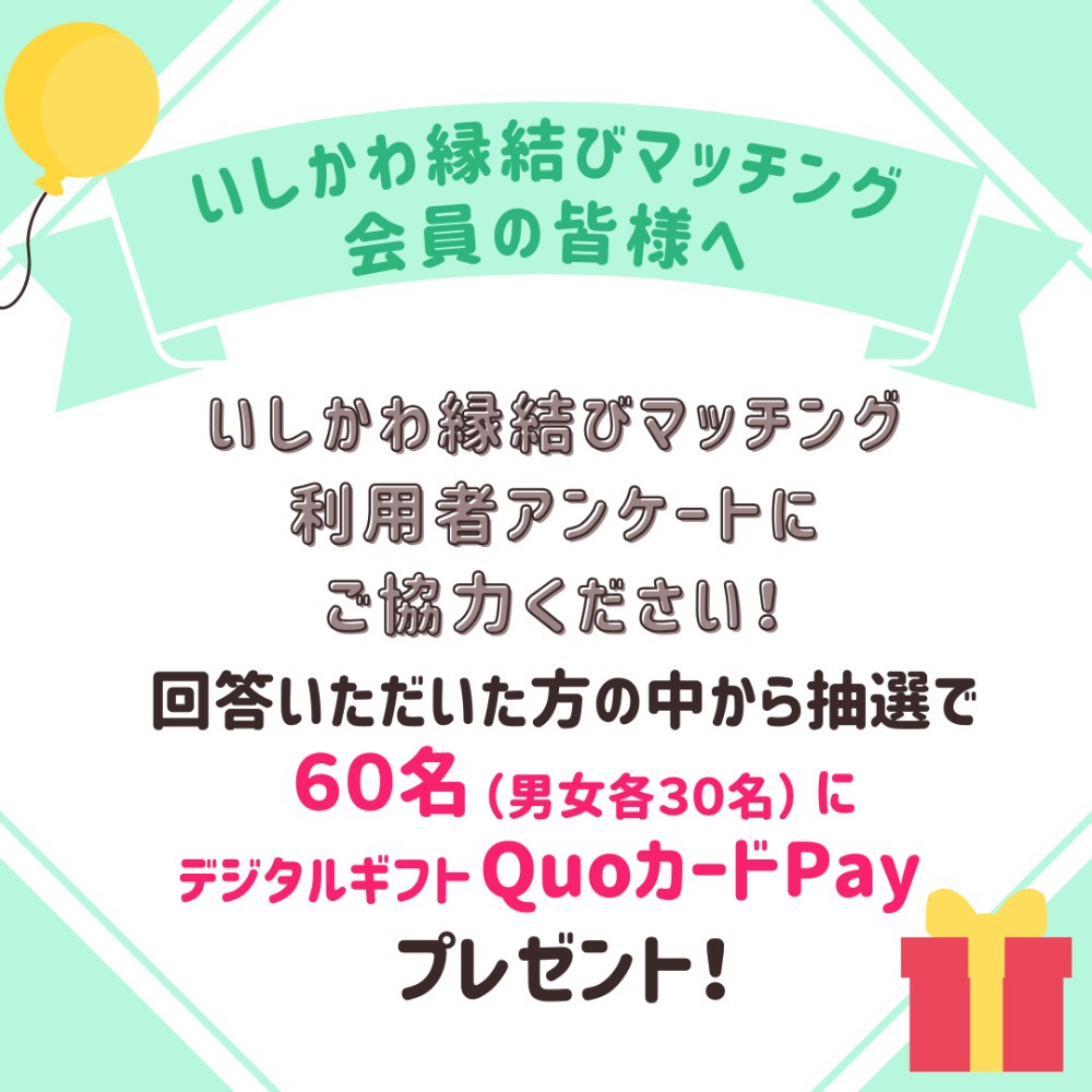 いしかわ縁結びマッチング利用者アンケート実施中!
