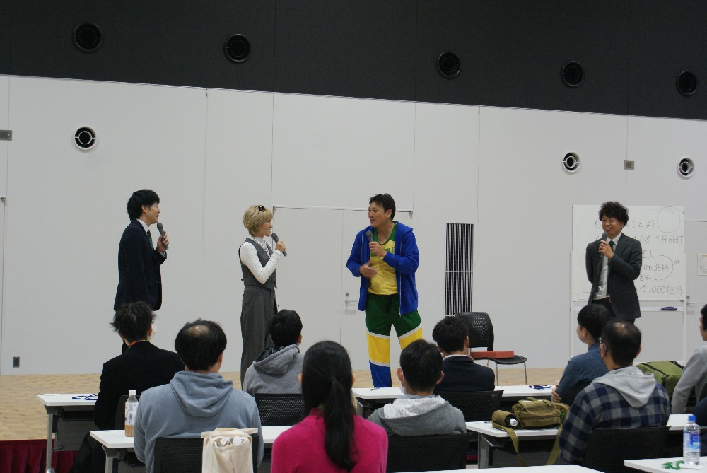 男性向けには、ものいい(横山きよし/吉田サラダ)のお二人を迎え、褒め上手な男子養成講座を開催しました。