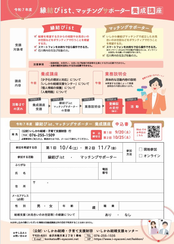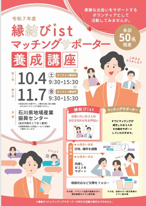 【募集】令和7年度縁結びist/マッチングサポーター養成講座を開講します