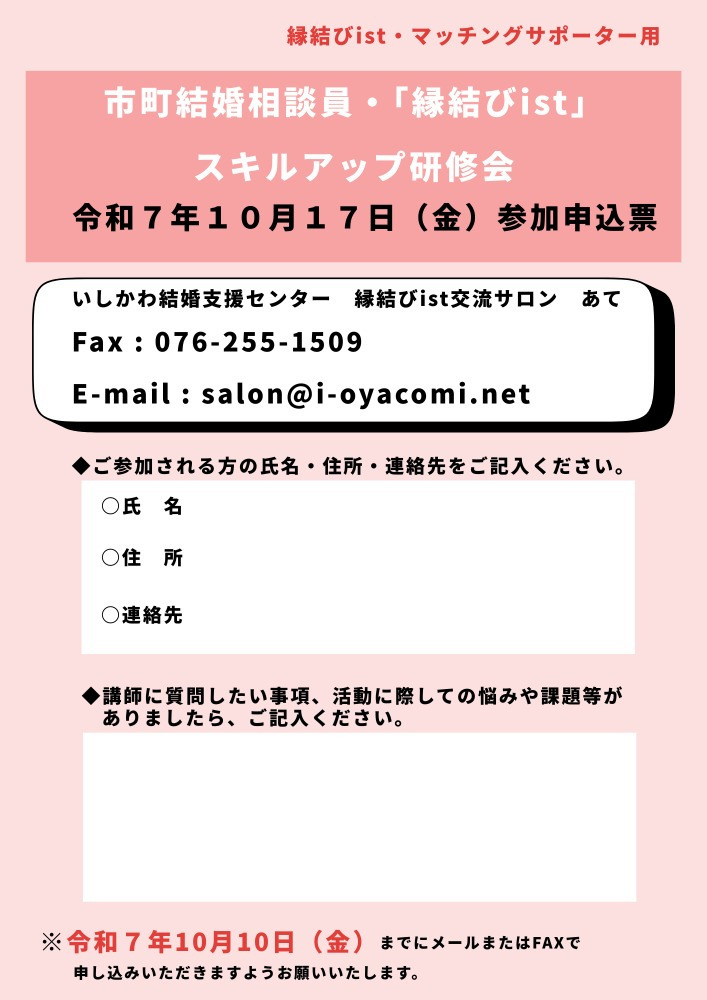 【終了】市町結婚相談員・縁結びistスキルアップ研修会