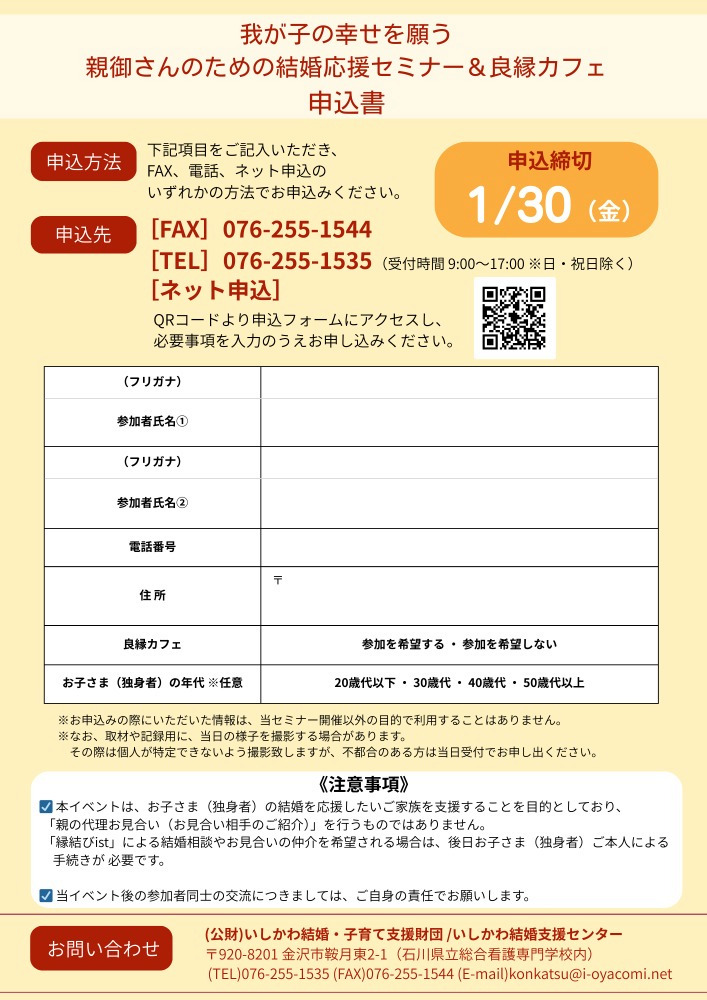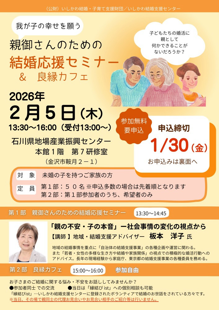 【参加者募集】「親御さんのための結婚応援セミナー」&「良縁カフェ」を開催します!