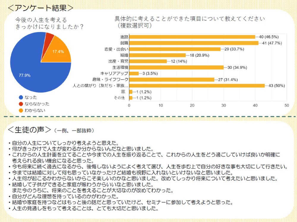 社会人の先輩の「過去」と「今」、そして「将来への展望」も聞くことができたことで自分の人生をどう過ごしていきたいか、しっかり考えたいと思っていただけたようです。