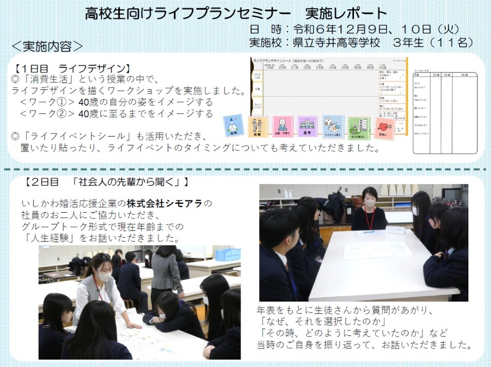 県立寺井高校3年生の皆さんの「消費生活」の授業にて、ライフプランセミナーを実施してきました。