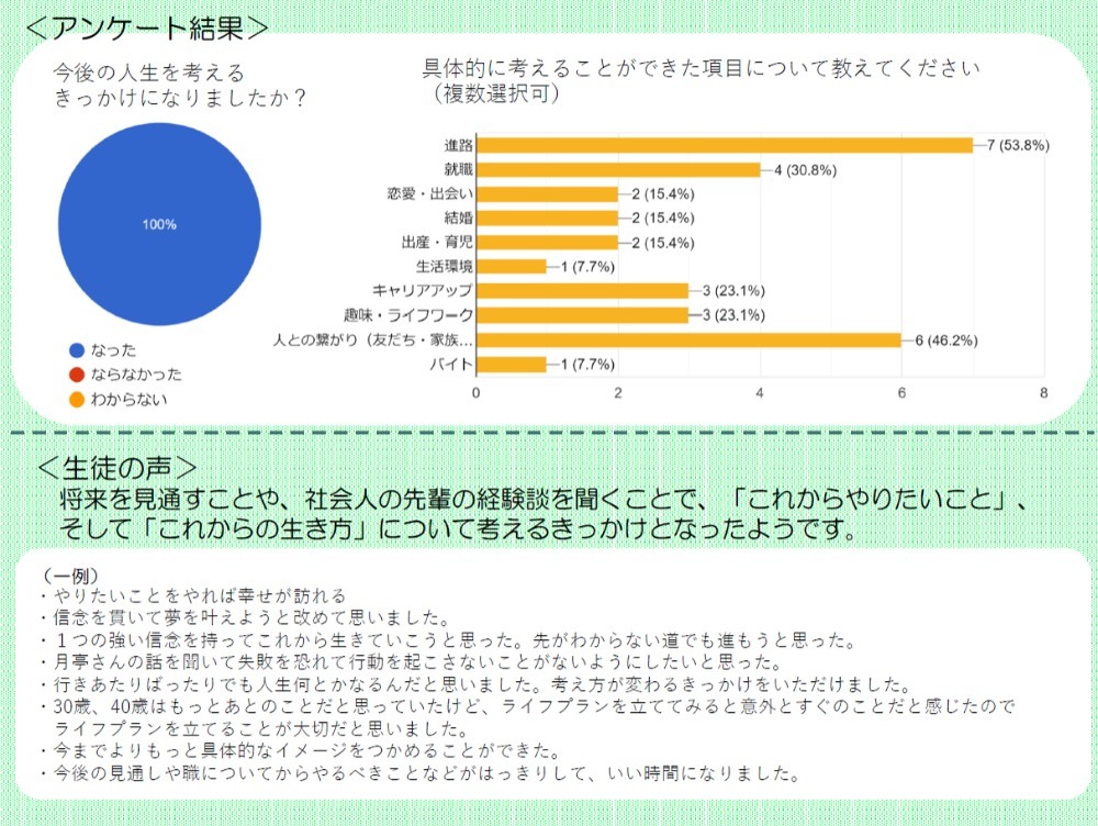 人生の様々なライフイベントについて「あの時はね、・・・」「この時は、・・・」と語る方気さんの姿をみて、生徒さんたちがどのような感想を抱いたのかは、下記の実施レポートをご覧ください!