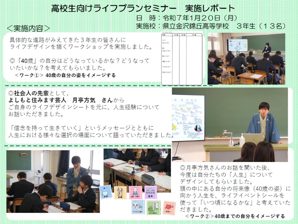 県立金沢錦丘高校の具体的な進路がみえてきた3年生の皆さんに、ライフプランセミナーを実施してきました。